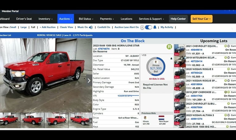 Participamos en subastas como Copart e IAA para adquirir vehículos.